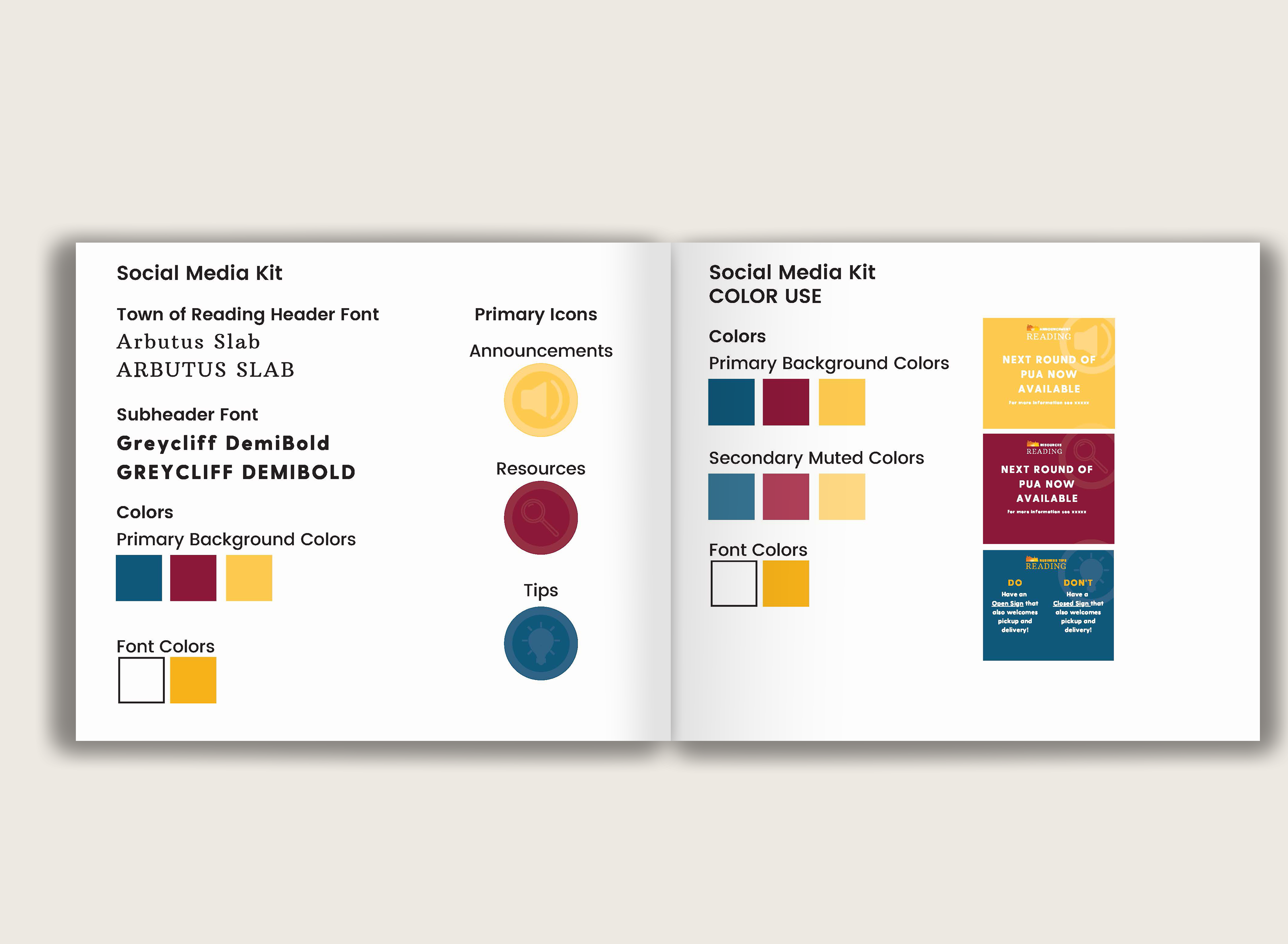 SUMMARY: In response to COVID-19 the Town expressed interest in promoting information more widely on social media. The project involved leveraging previously approved branding and developing a social media kit. Templates were made available in Canva for further adoption by the town.